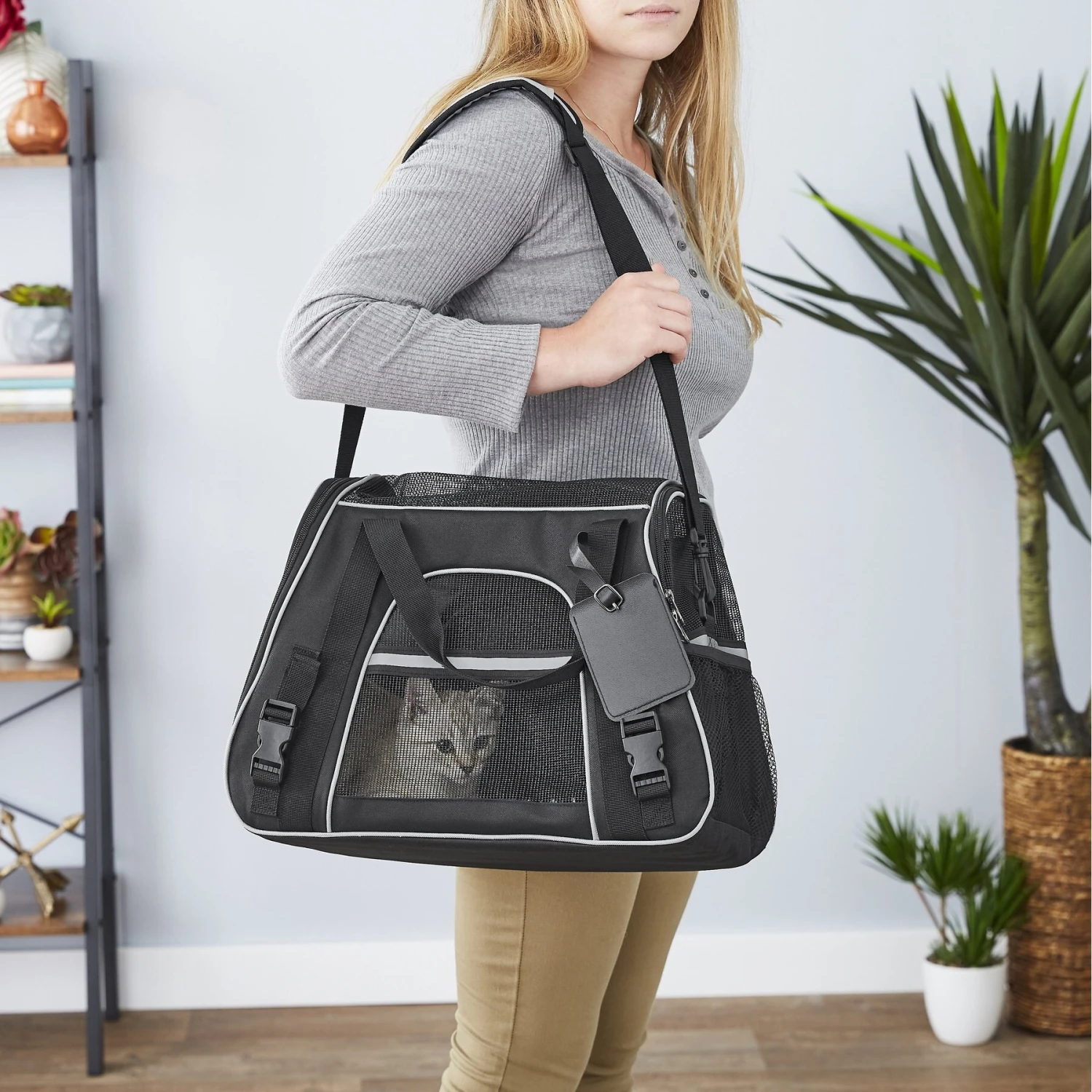 - Sides are soft so they can be slightly collapsed to comply with the under-seat compartment requirements of most airlines—so stamp that paws-port!