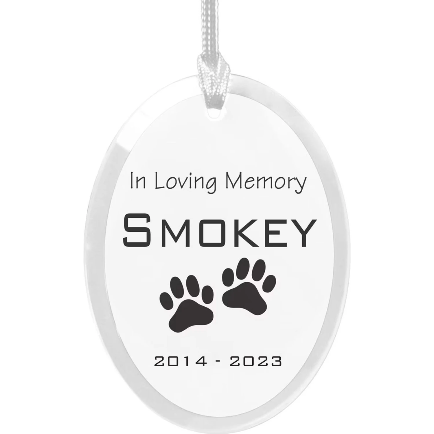 - Space for up to 12 characters, perfect for your pet’s name, and a custom year range.