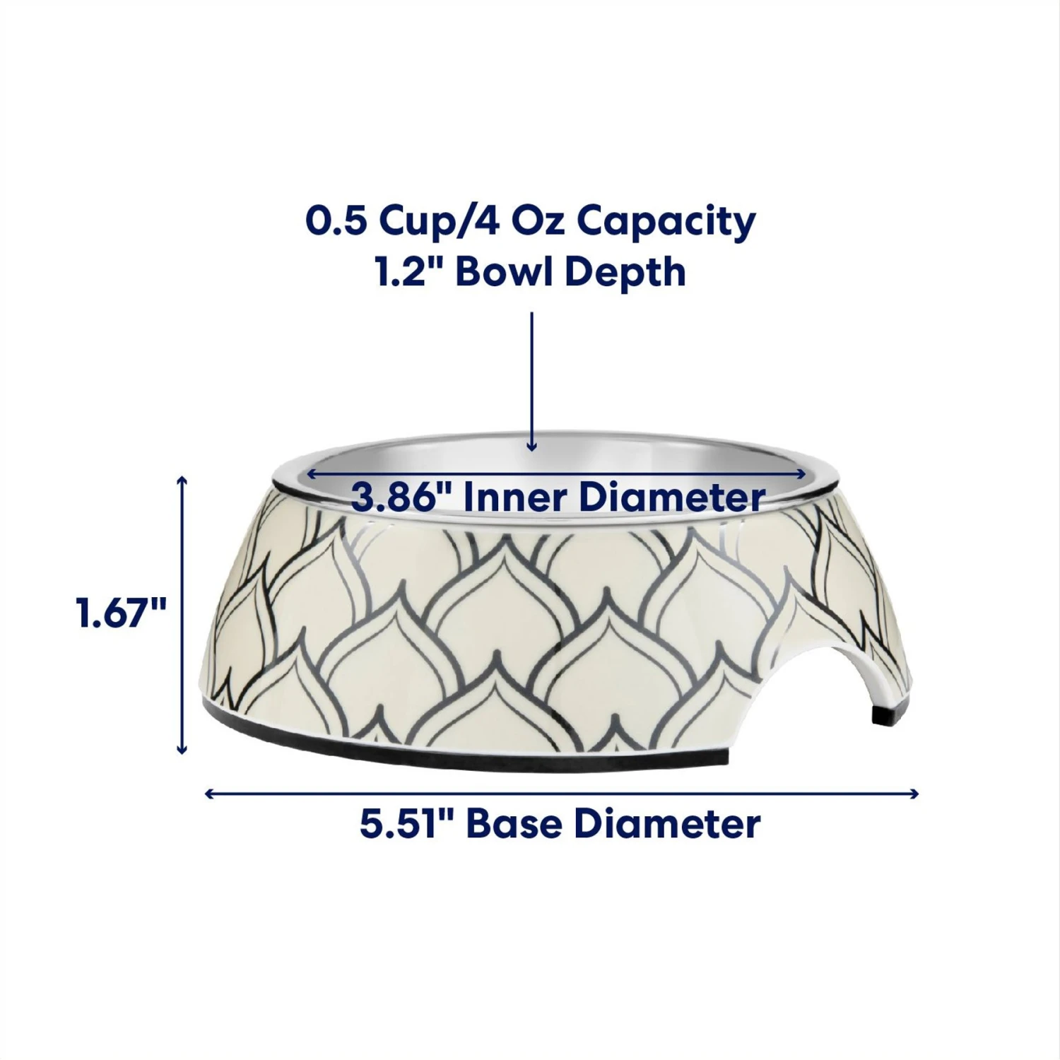 It’s always a positive when our pets are excited to eat, and it doesn’t get more enticing than this exotic Moroccan design stainless-steel bowl. Think of it as pulling out the fancy dinnerware for those special dinner dates, except this fancy bowl will always be around! Time to clean up? The stainless-steel bowl can be removed from the melamine base whenever things get dirty. It’s also top-rack dishwasher safe, making cleanup an absolute breeze.