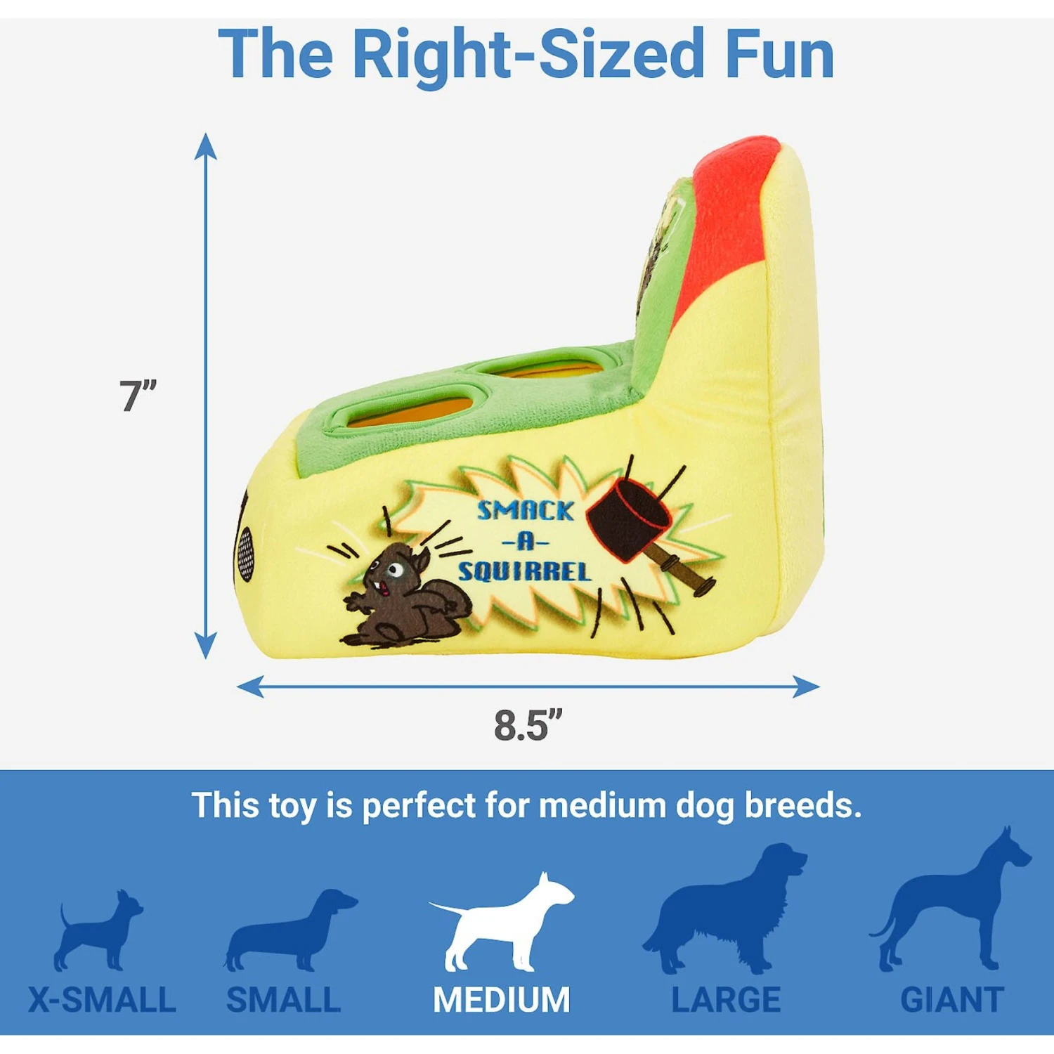 Smack a squirrel to smash your pup’s boredom! This cool, retro-design puzzle toy includes an arcade smack-a-squirrel game with three individual, squeaky squirrels and a squeaky mallet, too. This toy exercises your pup’s mind, keeping their brain active and giving them a mental workout while they have some solo playtime in search of all the squeaky toys.