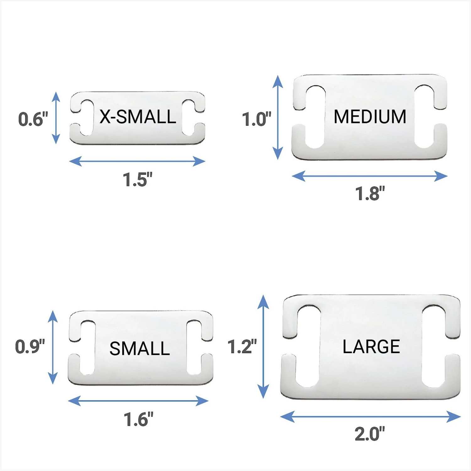 - Available in 4 sizes to fit collars from 3/8 – 1 inch wide.